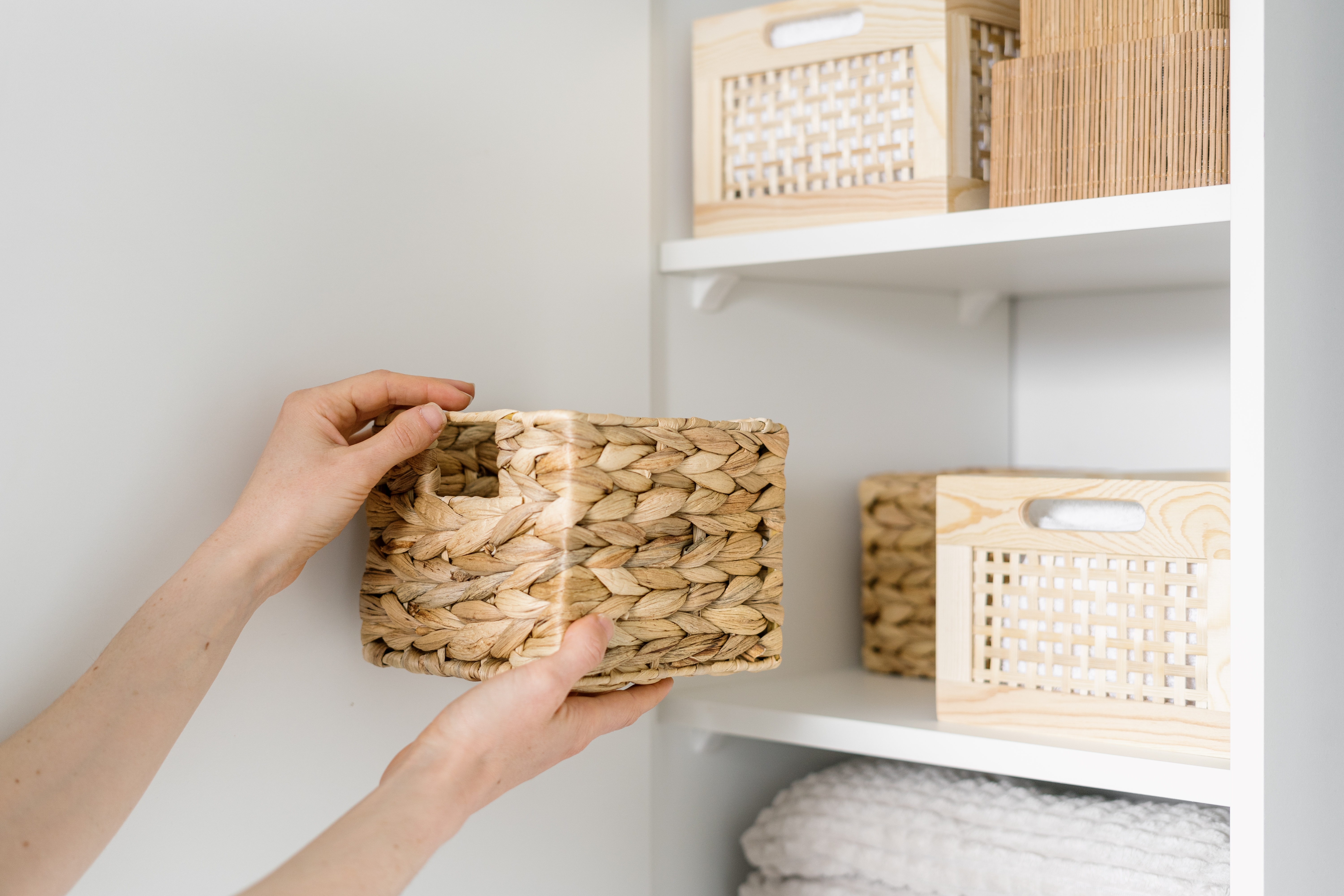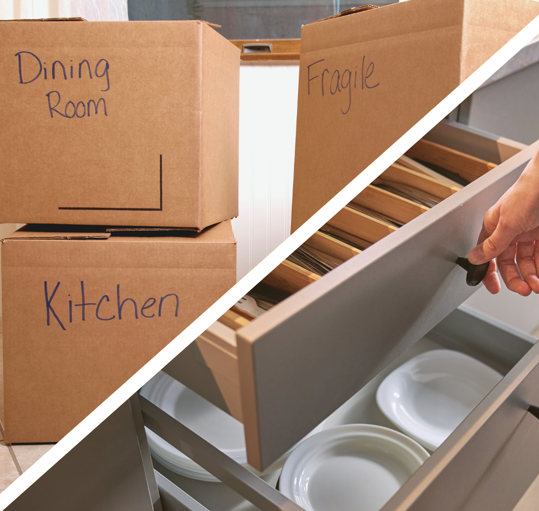 Each package includes hands-on unpacking, full system design, labeling, and cardboard and packing paper removal. Organizational products like bins, baskets, and drawer dividers are billed separately—we establish a budget and style preference during your pre-move call so there are never any surprises.